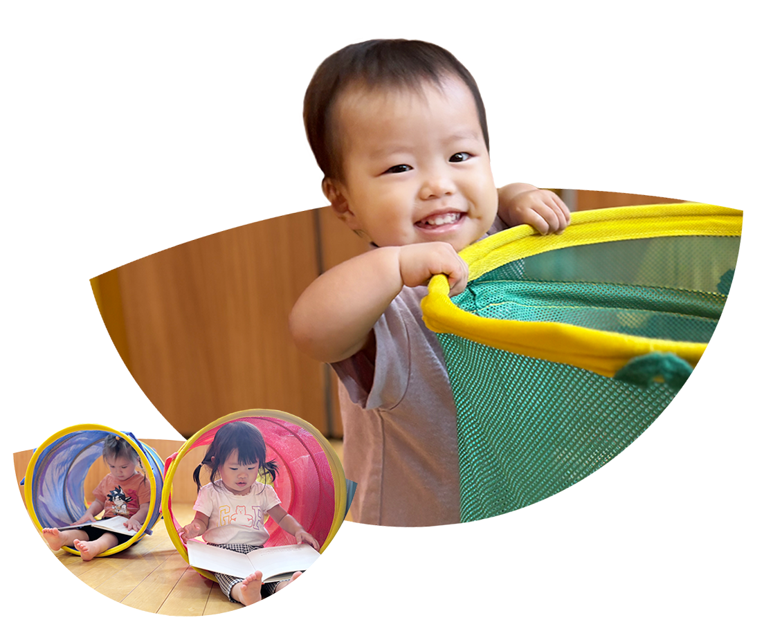家庭的な雰囲気の中で乳児では一人ひとりを丁寧に保育するための「育児担当保育」、幼児では「異年齢保育」を通してより豊かな人間関係を築いていける保育をしています。