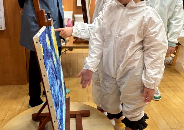 絵に触れてみたり、においをかいでみたり、そっとこすってみたりと、美術館ではできない、五感を使った特別な体験を楽しみました。