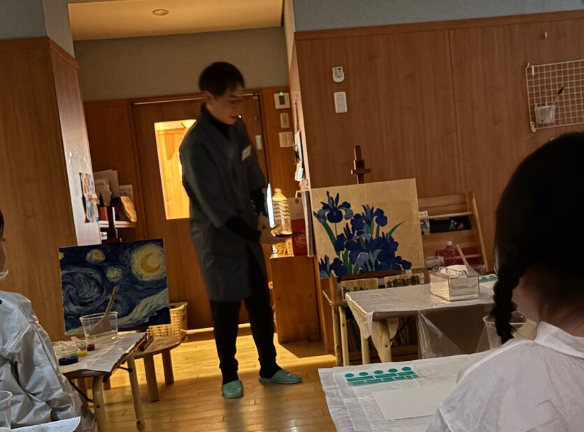 アイ保育園の子どもたちの為に、けい先生が油絵を、あんり先生が日本画を描いてくれました。
