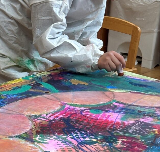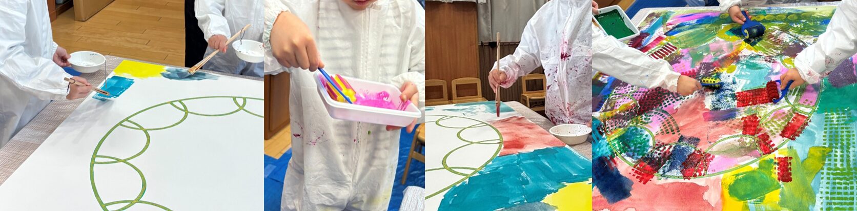 色の混ざりや形の違いに気づく中で、自然と対話が生まれ、絵を通した関わりが深まっていきます。