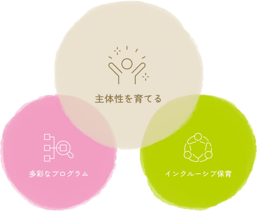 発達や個性の違いを受け入れ、一人ひとりに寄り添うことで、思いやりや協調性が育まれていきます。