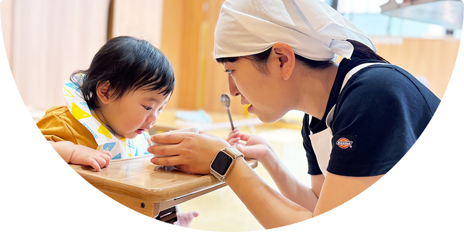 家庭的な雰囲気の中で乳児では一人ひとりを丁寧に保育するための「育児担当保育」、幼児では「異年齢保育」を通してより豊かな人間関係を築いていける保育をしています。
