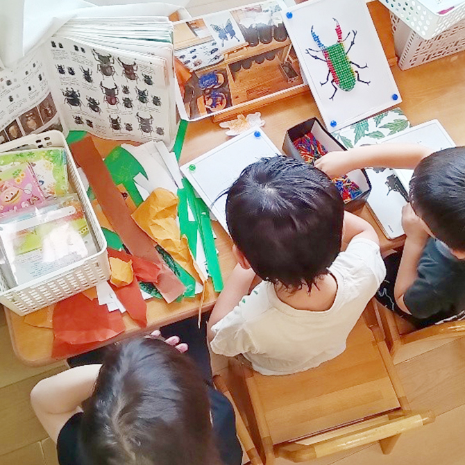 幼児期には、乳児期の経験を土台に、英語・運動・絵画造形など専門講師による活動を楽しく取り組みます。「やってみたい」「もっと知りたい」という気持ちを大切にしながら、豊かな体験を通して成長を見守ります。創造力や友だちとの関わりが広がる環境づくりにもこだわっています。